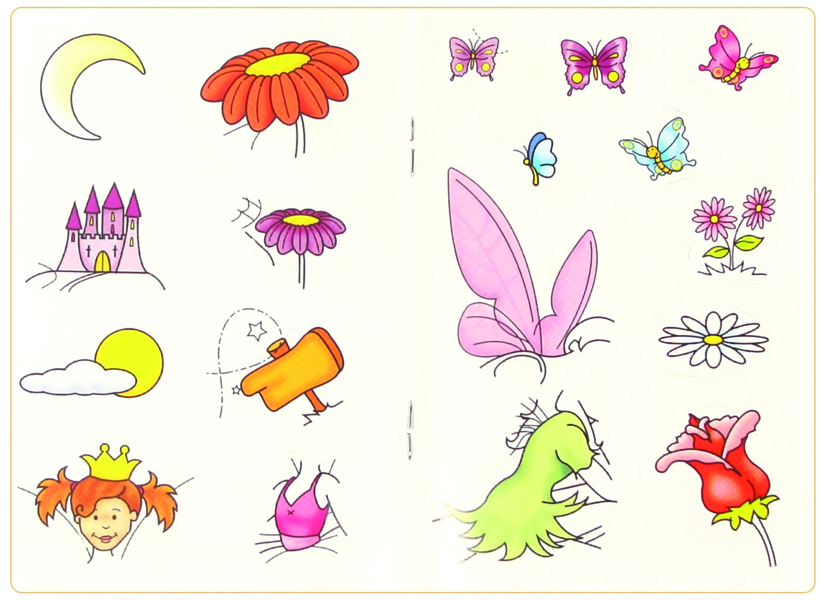 The larger sticker books all retail at 99p and offer 20 pages of good quality white paper with 2 double spreads of sticker sheets. Children love adding the die-cut stickers to the appropriate site on each page and can then colour in the entire page: each book offering hours of fun. Titles include Animals, My First Sticker and Mosaic Picture Stickers.